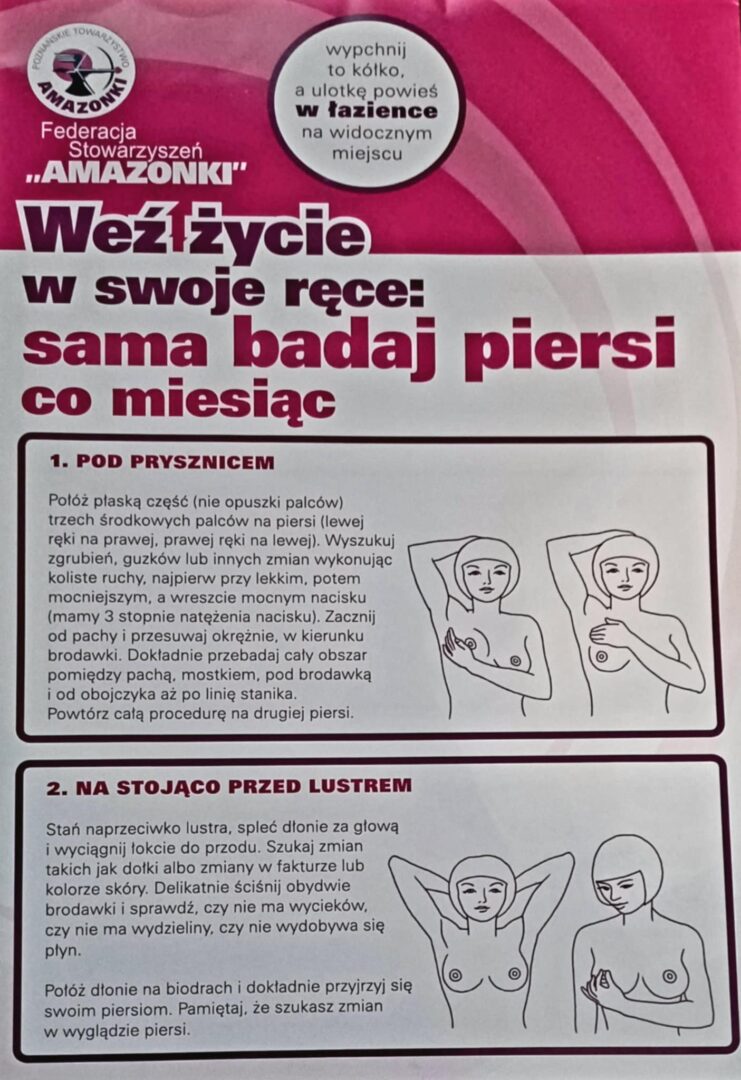 - wyjaśniła zasady prawidłowego samobadania piersi,