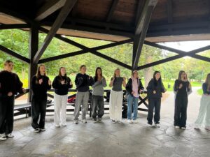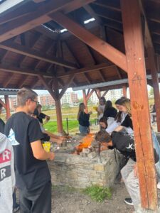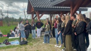Uczniowie klas pierwszych wraz z wychowawcami wybrali się na pieszą wędrówkę trasą, przygotowaną przez uczniów klasy 4TR oraz ich wychowawcę. Po drodze odbywały się różne zadania integracyjne – gry terenowe, quizy, wspólne zabawy ruchowe i zadania wymagające współpracy całej grupy. Zorganizowano również ognisko z pieczeniem kiełbasek, które było okazją do rozmów i lepszego poznania się. Atmosfera sprzyjała zawieraniu nowych znajomości oraz integracji uczniów z nauczycielami.