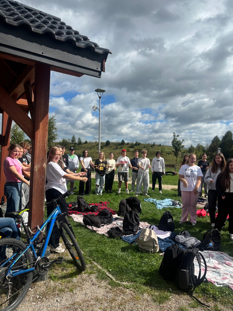 Uczniowie klas pierwszych wraz z wychowawcami wybrali się na pieszą wędrówkę trasą, przygotowaną przez uczniów klasy 4TR oraz ich wychowawcę. Po drodze odbywały się różne zadania integracyjne – gry terenowe, quizy, wspólne zabawy ruchowe i zadania wymagające współpracy całej grupy. Zorganizowano również ognisko z pieczeniem kiełbasek, które było okazją do rozmów i lepszego poznania się. Atmosfera sprzyjała zawieraniu nowych znajomości oraz integracji uczniów z nauczycielami.